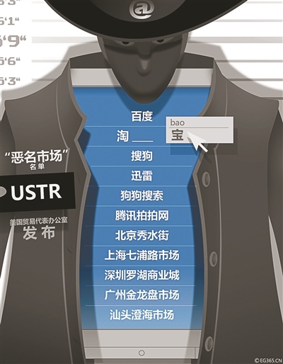 资料显示,“恶名市场”名单由美国贸易代表办公室(USTR)发布,目的是为了协助有关机构加大力度打击侵犯知识产权的行为。从2011年2月首份恶名市场名单发布至今,百度、淘宝、搜狗、迅雷、腾讯拍拍网等都曾不幸入选。而早在2012年12月,USTR就已经宣布将淘宝网从“恶名市场”名单中移除。在2015年“恶名市场名单”报告里,又列入5家中国市场,分别是:北京秀水街、上海七浦路市场、深圳罗湖商业城、广州金龙盘市场和汕头澄海市场。