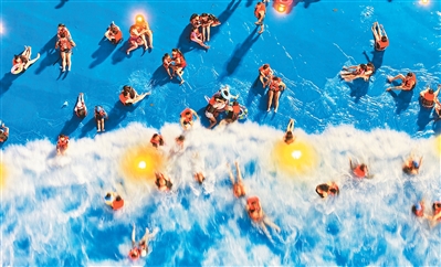 不久前,在江苏南通森林野生动物园,南通“苏超”球迷专属夜公园免费畅玩吸引了众多“苏超”球迷。凡持有江苏城市足球联赛任意场次票根的球迷,均可享受一次夜公园免票入园。图为球迷、游客在专属夜公园水上乐园戏水。许丛军摄(人民视觉)