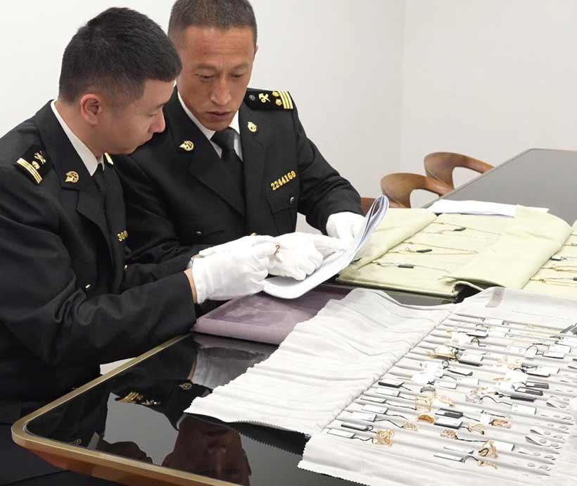 参展第八届进博会的一批保税珠宝在接受海关监管。新华社发