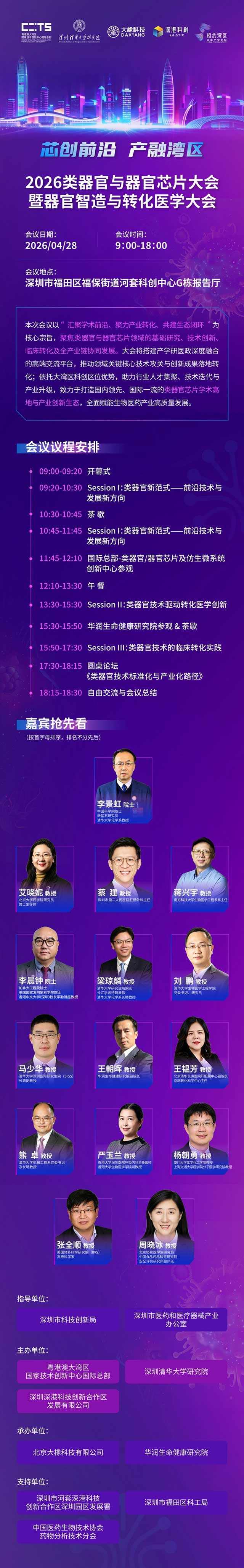 芯创前沿,产融湾区|2026类器官与器官芯片大会重磅启幕,4月28日鹏城共赴盛会!