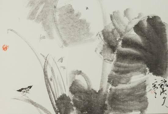 先谈“淡字”。确实,胡石的水墨世界是淡的。浓得化不开的热烈是许多人表达的强项,追求淡滋味者却少,何也?难。淡滋味是一种格调很高的滋味,正因为淡,才可以容纳千般滋味,才具备了作为单纯事物的容量。曾经沧海再观水,自然看淡。经过暴风雨的洗礼,再观毛毛雨,自然看淡。吃过了人间珍馐再回到萝卜咸菜稀饭,与一直萝卜咸菜稀饭的滋味岂能一样?当生命经历了大的欢愉和热烈,再回到寂静中,淡滋味才是淡滋味,这个淡,是高淡,非寡淡,它超拔于感官,抵达精神。反映在用墨上亦如是。墨分五彩,淡墨的运用难度很高,但这是胡石喜欢的,墨的淡,正是心的淡,他画中的一草一虫一花一叶,淡墨写成,寥寥几抹,看似单薄,实则完满世界,那些蜂、蛾、甲虫,仿佛有了佛性,拥有无限空间,观照大千世界之五彩斑斓。想象一下吧,星月皎洁,万籁俱寂,时空杳然,世界一派渺茫,仿佛只有这一草一虫一花一蛾了……你能听到明月高悬时分读书灯下那虫蛾的一呼一吸一机一动,以及他们的窃窃私语。从这淡泊的世界中,你能感受到宇宙不是不可触摸的虚空,你能感受到宇宙的真实存在,它有大有小,有远有近,有虚有实,就存在于你的一呼一吸之间一思一念之间。同样,此刻你更能真实地感受到自身的生命存在,充实,饱满,通透,此刻,人本身就是一个小宇宙。读胡石的画,我于无限宁静的月色中获得生命的欢乐。