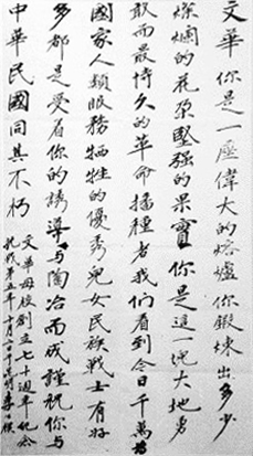 李公朴在其母校文华中学70周年时题字。