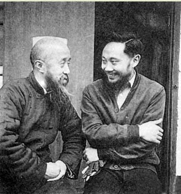 李公朴(右)与沈钧儒在狱中相谈甚欢。