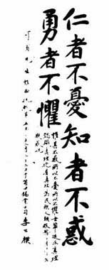 李公朴书写的“仁者不忧 知者不惑 勇者不惧”大字条幅。