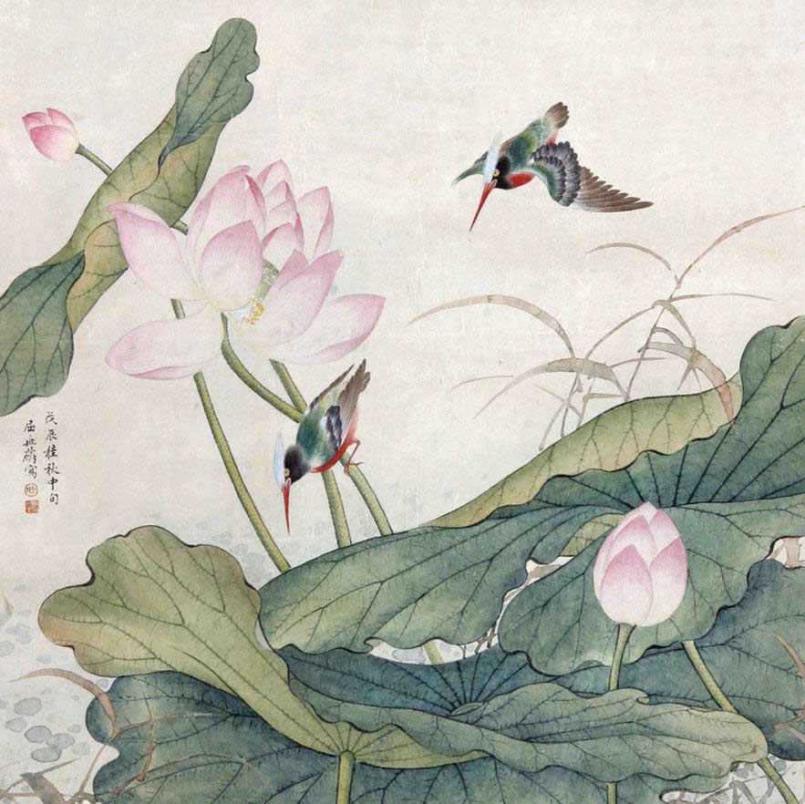 屈兆麟(1866年-1937年),字仁甫,北京人。少年时拜清廷画师张乐斋为师,学习工笔画,因刻苦学习,青年时绘画技艺已颇具功底。他18岁时,经张乐斋向内务府推荐,进清宫造办处如意馆承差,任专职画师,其画作主要用以装饰清宫各殿堂。