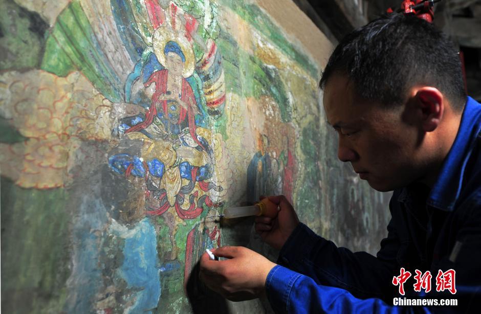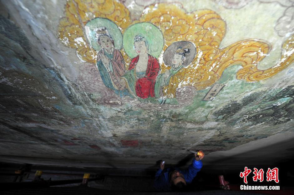 这些修复人员都称得上壁画修复行业的顶级匠人。中新社记者 翟羽佳 摄