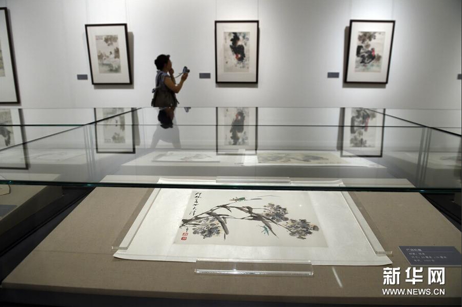 8月12日,萧朗书画艺术展在北京中国国家博物馆开幕。此次展览为纪念著名花鸟画家、美术教育家萧朗先生百年诞辰而举办,共展出萧朗先生及其子女向国博捐赠的国画作品90幅,书法作品10幅。(新华社记者 金良快 摄)