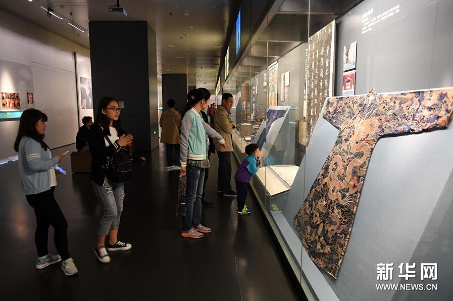 (2)10月7日,观众在首都博物馆里参观。
