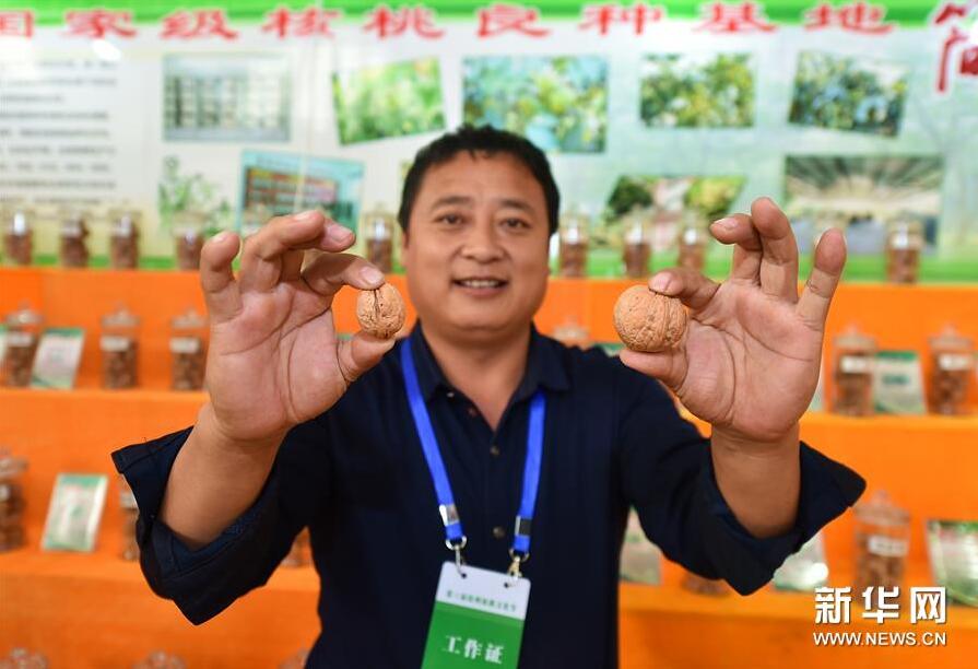 (4)10月9日,参展商在展示一大一小两个核桃。