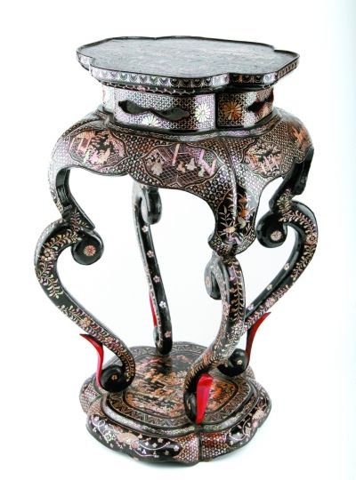 清代早期黑漆嵌螺钿双曲跟香几