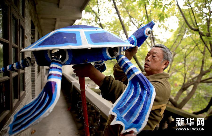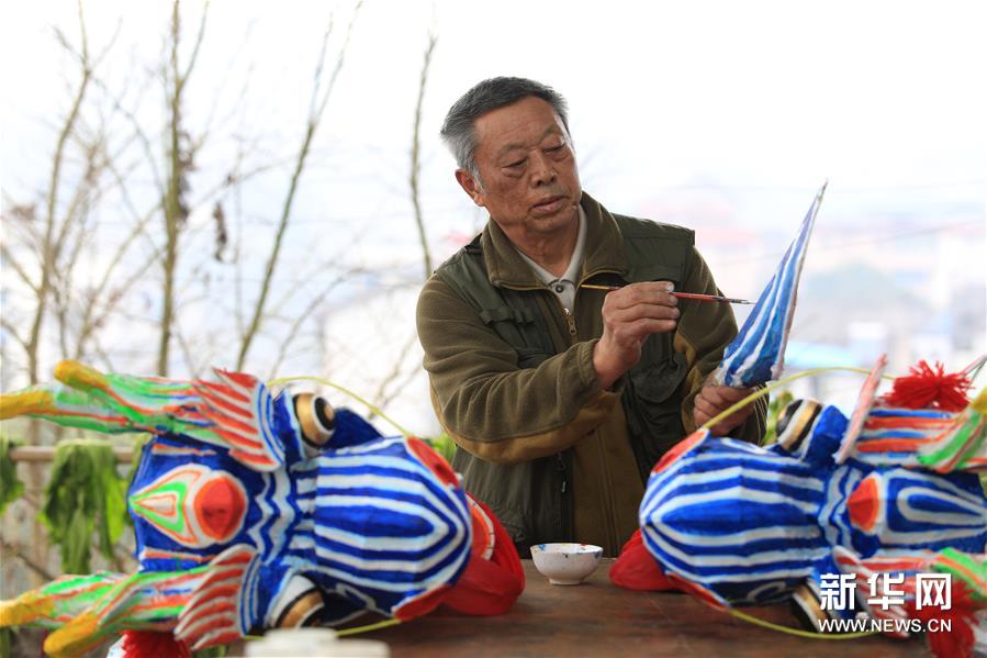 唐门彩扎是重庆市非物质文化遗产项目,蕴含着重庆偏岩古镇丰富的历史文化底蕴,集工艺、书画印于一身,品种丰富多样。在古时小镇赶场时,唐门彩扎的龙、狮作品造型生动,表演颇受欢迎。唐门彩扎工艺可追溯到清代,作品用竹篾扎成,经裱糊、彩绘、装饰后制成,整个过程必须依靠手工才能完成。除了传统的龙、狮等造型外,“天上飞的,水里游的都能扎。”唐门彩扎传承人唐亁太说。新华社发(秦廷富 摄)