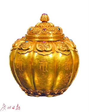 明宣德 金嵌宝莲托梵文瓜棱盖罐 (RMB34,500,000 中国嘉德2016秋拍)