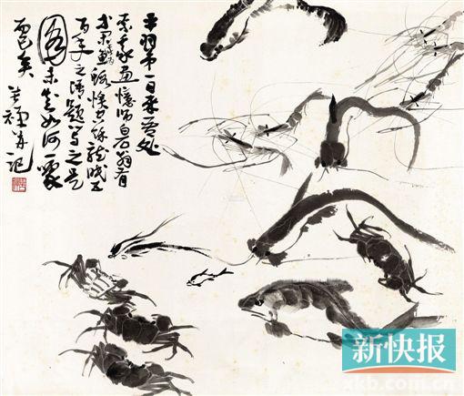 ■李苦禅 水族图 题识:平羽弟一日来吾处索我画。忆师白石翁有“等闲我为鱼虾误,空余龙眠五百年”之语,题写之是图,未知如何。一噱而己矣。苦禅并记。