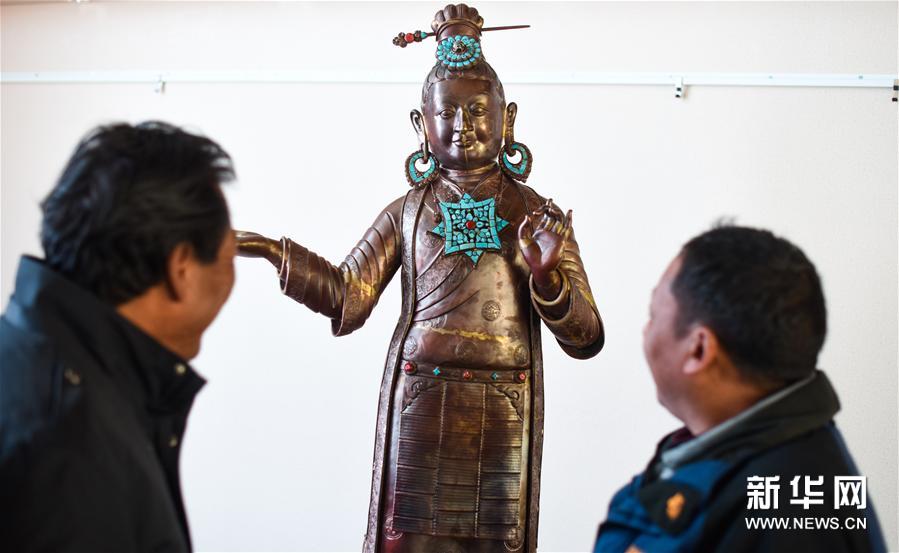11月22日,西藏大学首期藏族传统雕塑非遗传承人群培训班举行结业展览。23名涵盖各个类别的西藏各级代表性传承人和造像师成为西藏首个藏族传统雕塑传承人群培训班学员,学员们进行了为期一个月的非遗文化知识普及、藏族雕塑史论训练、各派系交流及实践观摩等培训。(新华社记者 普布扎西 摄)
