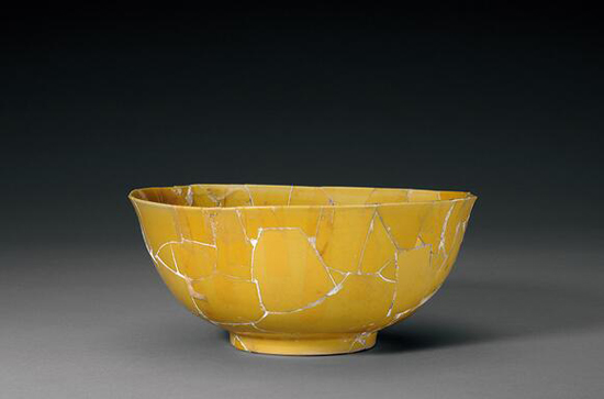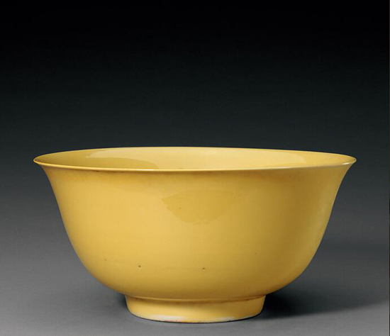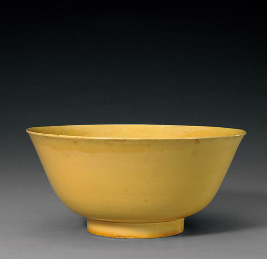 浇黄釉碗 明弘治(高13.9厘米 口径28.3厘米 足径11.7厘米)