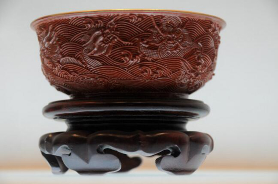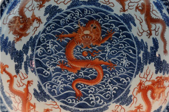 青花海水红彩龙纹瓷盘 清乾隆 国家一级文物 高8.8厘米,口径47.8厘米