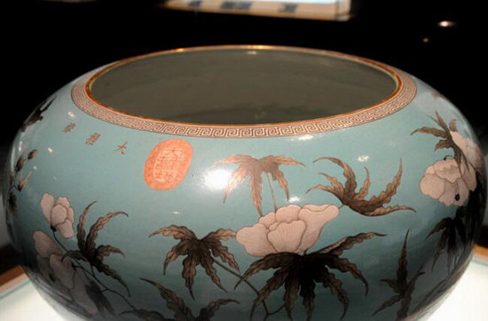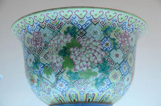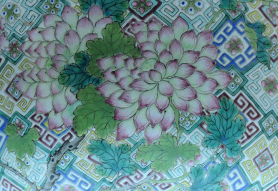 粉彩锦上添花纹花盆(纹饰细节图) 清道光