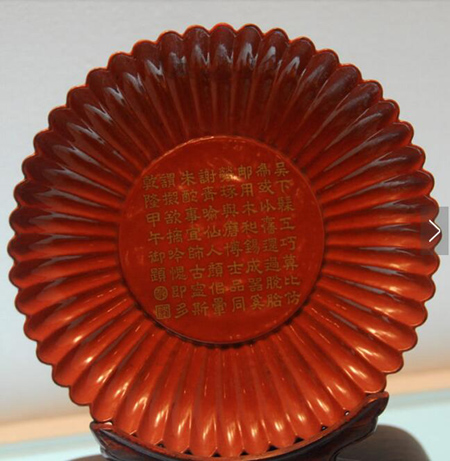 仿朱漆釉金彩御题诗菊瓣纹盘 清乾隆