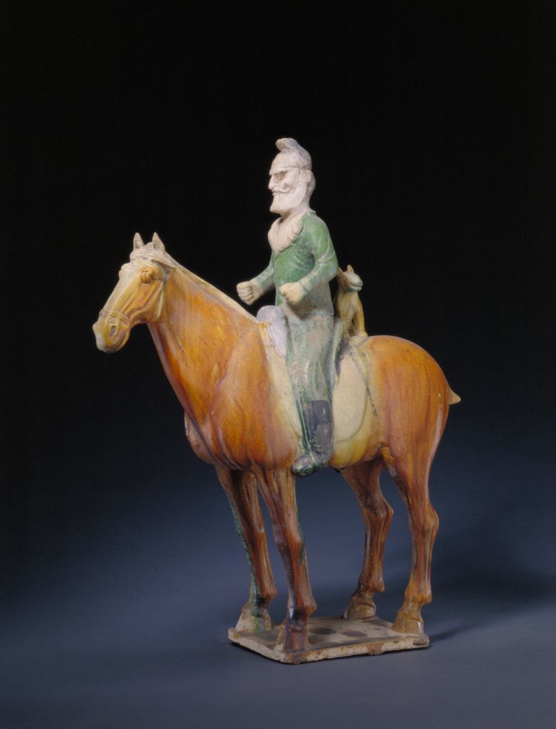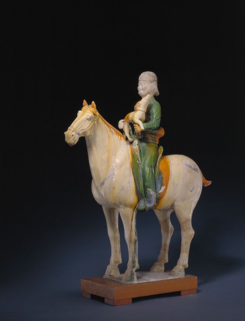 三彩骑马狩猎俑,唐,高42cm