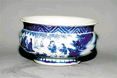第三,从工艺造型来看,一些精制的瓷香炉由于其精细的工艺而提升了其价值。如清代康熙年间的青花山水香炉,腹部彩分水法染出青花五色,描绘山水图纹。青花色泽艳丽,色阶分明,釉面润泽。