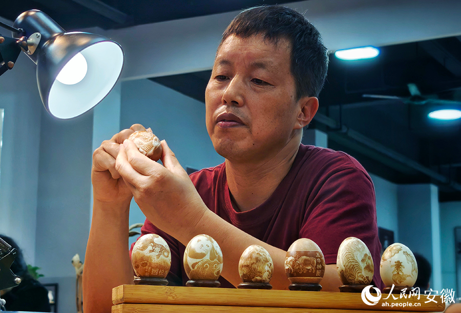 选手正在耐心进行蛋雕艺术创作。人民网记者 周坤摄