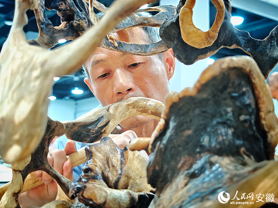 选手正在进行根雕艺术创作。人民网记者 周坤摄