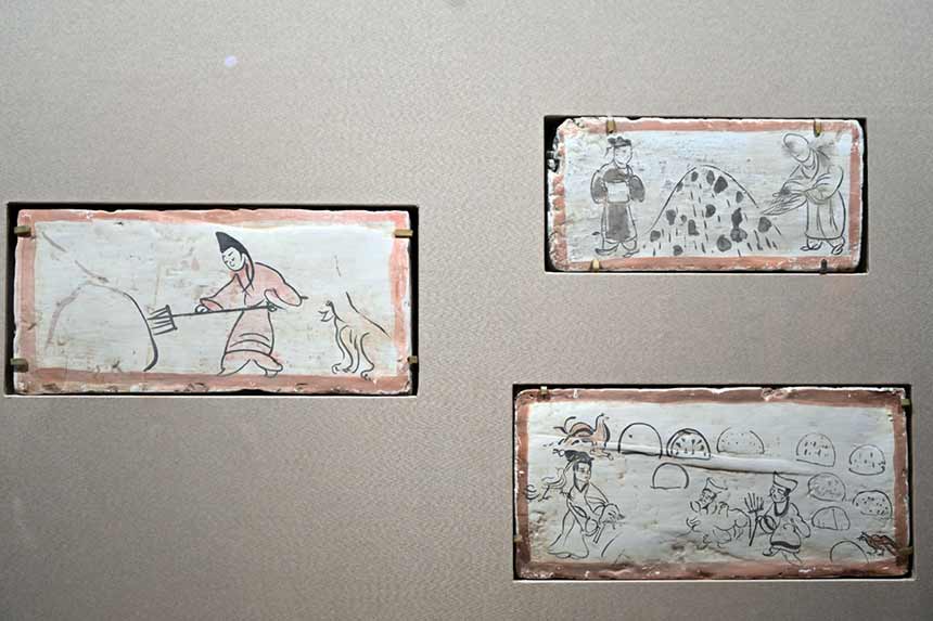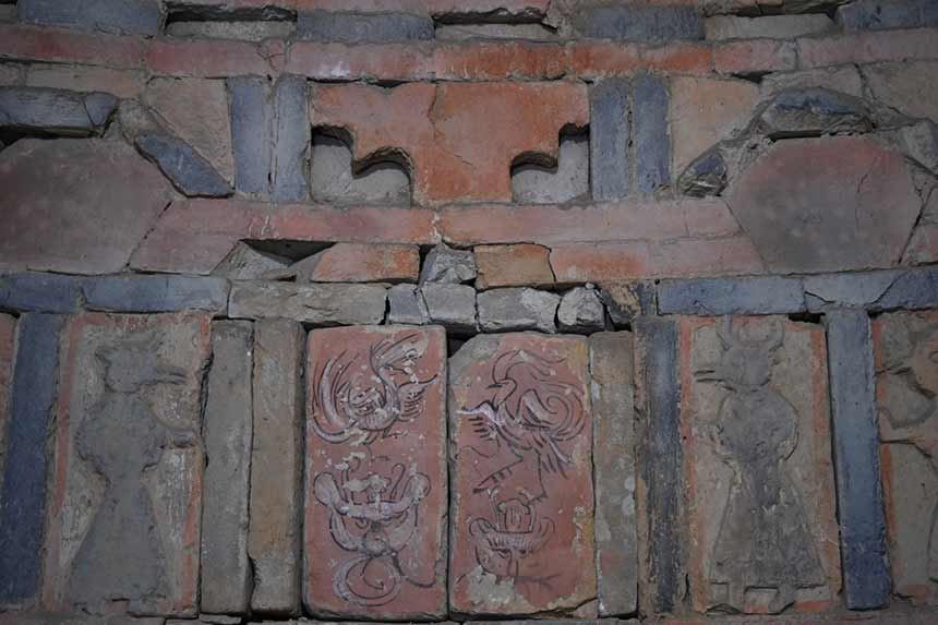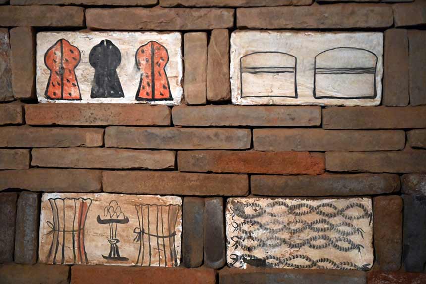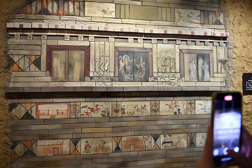 甘肃省张掖市高台县魏晋壁画墓内的壁画砖。图源:中国日报网