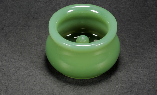 作品选碧玉,颜色翠绿鲜艳,质地润泽细腻,香插雕刻为敞口水盂状,内似一水滴之物,留一孔,可插香之用。可谓造型精巧,实用美观。