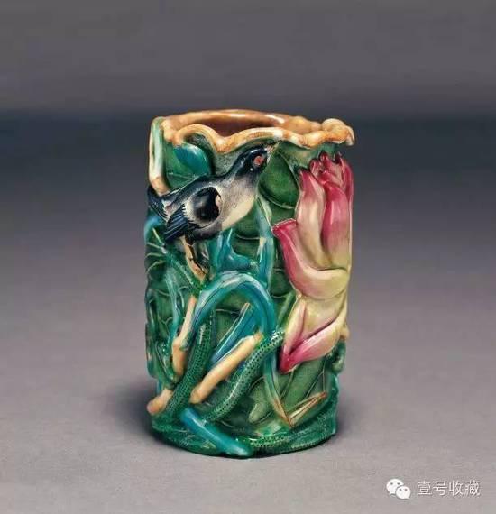 光绪时期署“大雅斋”款的粉彩瓷水平较高,较常见的是在浅松石绿、佛头青、藕荷等底色上绘花鸟纹饰,色泽浓艳,彩略厚,胎釉致密精细。