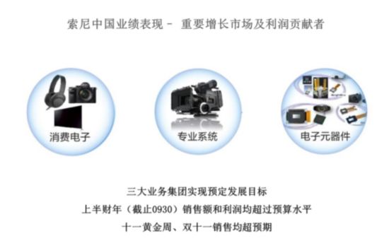 据高桥先生介绍:“索尼中国旗下的民用产品、专业系统、电子元器件三大业务在上半年的销售额和利润方面都超过预算水平。尤其在消费电子,国庆节和双11销售都很好。对于双12的表现,我们也很有信心”。