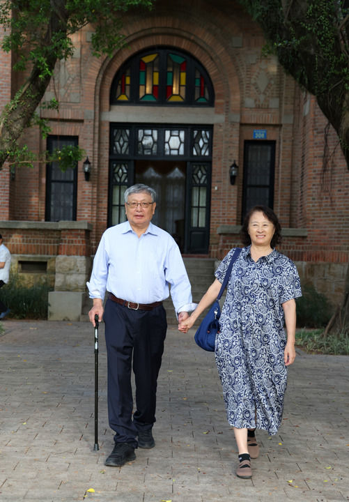 9月7日,张益唐和太太在中山大学校园里。新华每日电讯记者卢汉欣摄