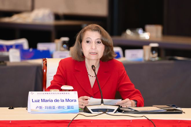 “2025全球服务贸易包容发展圆桌会”由开场致辞、倡议发布、主题研讨和自由交流等重要环节组成。国际贸易中心副执行主任多萝西·腾博发表致辞。