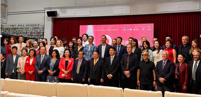 第21届中美电影节、中美电视节将于11月6日在美国洛杉矶开幕,推动中美影视及人文交流与合作,图为嘉宾合影。(摄影:李娜/中国日报)