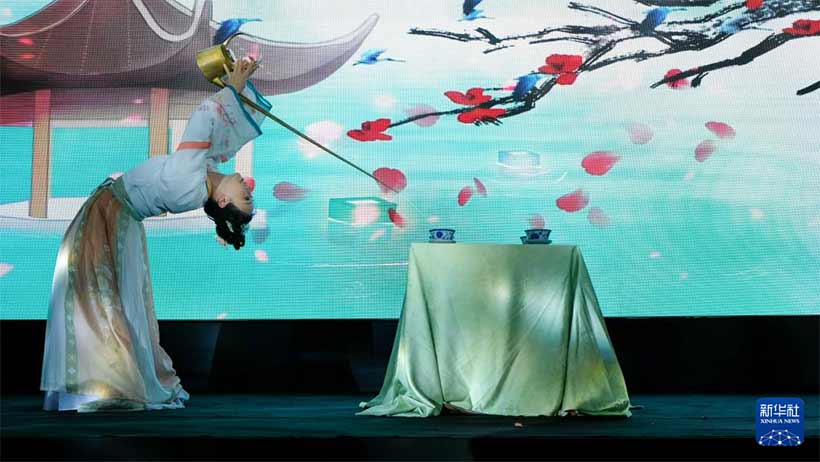 11月15日,在摩洛哥卡萨布兰卡,演员进行茶艺表演。新华社记者 赵一宁 摄