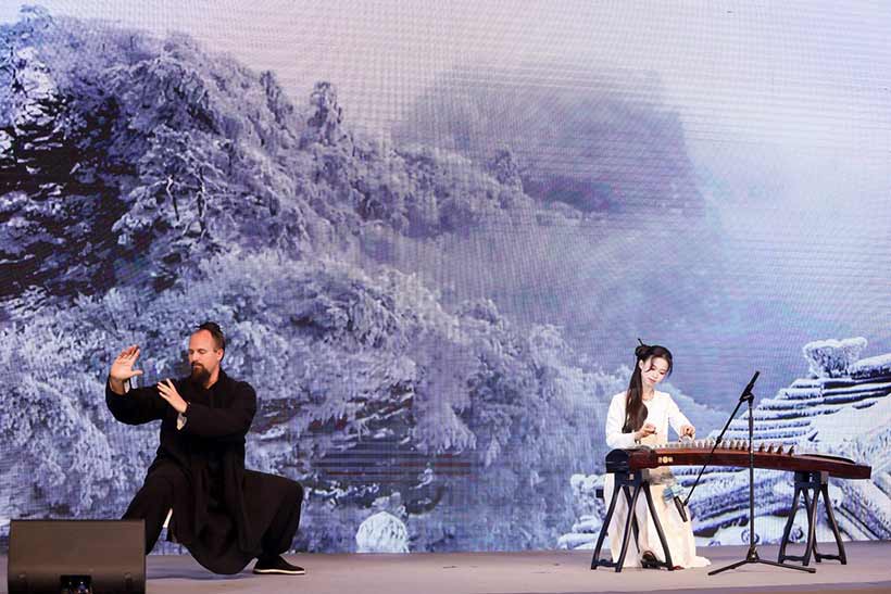 李资根与彭静旋同台演绎太极与古筝。
