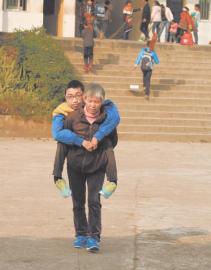 周一到周五的早晨,宜宾市江安县江安镇南屏学校里,总能看到一个熟悉的身影,身子瘦小的母亲徐国文,背着残疾儿子罗宇,缓步走向200米外的教学楼,爬上位于三楼的初中二年级教室。虽然罗宇才上初中,但徐国文陪伴儿子上学已经10年了。