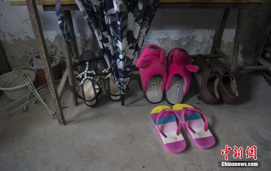 陈秋菊在宿舍摆放的鞋子。中新社记者 张浩 摄