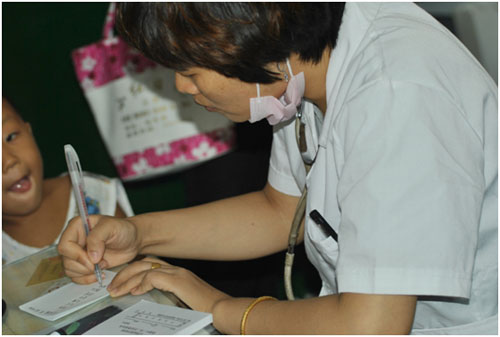 “阿莫西林胶囊,一天吃3此,一次吃1片。铝碳酸镁片,饭后一小时吃,一次2片,一天3次……”陈伟一边叮嘱着患者,一边用马克笔在每个药盒上写下服用方法。“村里老年人多,文化程度不高,视力也不好,他们看说明书可能比较费力,写在药盒上更清楚,更方便他们吃药。”陈伟告诉记者。