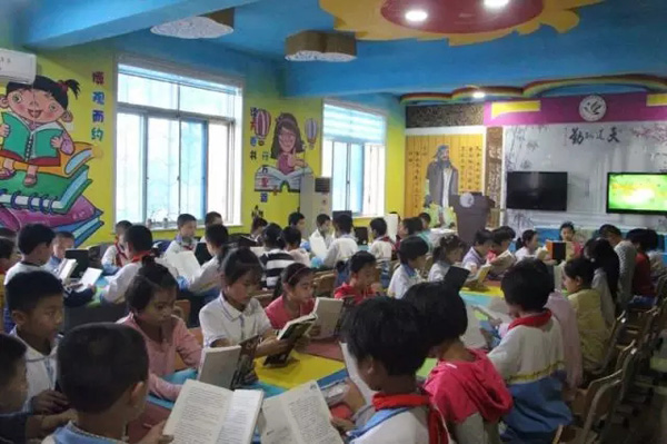 每逢周末和节假日,崭新的图书阅览室、书画室、剪纸活动室、棋类室、心理咨询室、室内运动室免费对留守儿童开放,还有志愿者为孩子们进行全程辅导。