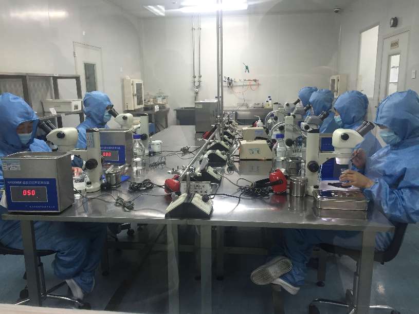 技术人员在密闭实验室内对眼科产品进行超声波清洗。聂晨静 摄