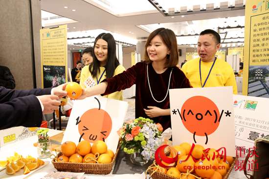 15日举行的奉节脐橙产销对接会上,彭阳带领团队现场为大家呈上可以喝的橙子