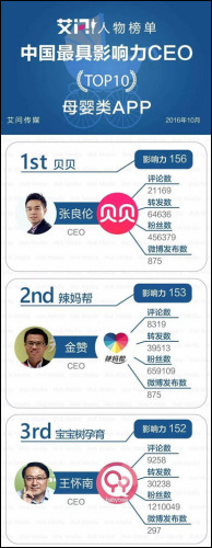 艾问母婴人物榜单 贝贝网张良伦为最具影响力CEO