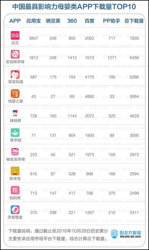 此外,艾问还依据软件下载量发布了一份榜单,哪些APP在母婴界“笑傲江湖”一目了然。