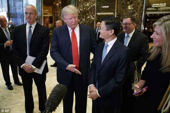 特朗普和马云会面,阿里巴巴将为美国创造100万个就业机会。(图片来源:每日邮报)