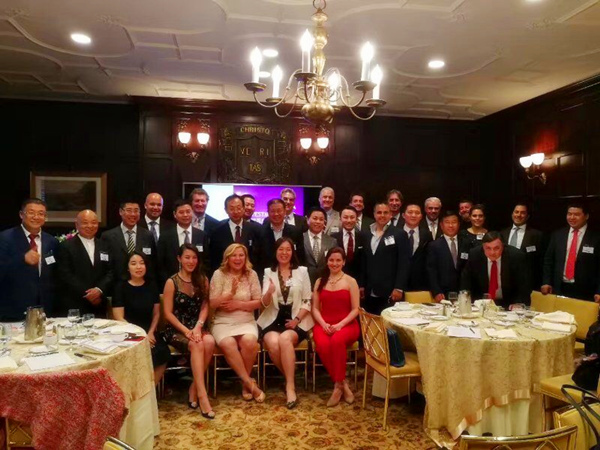 参加此次中美政商领袖对话的嘉宾包括:空中商学院主席、步长制药集团董事局主席赵涛,美国汤普森集团主席李雪锐,空中商学院执行主席、神玉艺术馆馆长王伟斌,空中商学院慈善委员会主席、雍和盛世集团董事局主席李丹,空中商学院股东、金肖国际投资集团董事长岳柳,空中商学院股东、东润环能集团董事长邓建清,空中商学院股东、嘉寓股份总裁薛道荣,储金控股集团公司董事长林高宝,中国居易国际控股集团董事长刘向阳,中国百替集团董事长李孝平,海亚投资集团公司董事长范玉荣,陇悦矿业有限公司董事长王慧英,空中商学院创始股东秘书长于金龙等,美国出席贵宾有:纽约共和党主席Edward Cox爱德华·考克斯、国会议员Lee ZeldIn兹丁、国会议员Claudia Tenney克劳迪亚·坦尼、国会议员John J. Faso约翰·法索、国会议员Joe Wllson乔·威尔逊、国会议员Ted Budd泰德·巴德、议员办公室主任Joanthan Day乔纳森、国会共和党主席Steve Stivers史蒂夫·斯蒂夫斯、纽约州前州长George E.Pataki乔治·帕特其、Fortune 金融投资公司主席Barry Akrongod巴瑞、汤普森集团王连波副董事长兼总经理及其他美国政商名流共同出席了当晚峰会晚宴。
