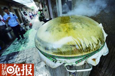 法晚记者数了数,这3家粽子窝点,当时一共有10个正用明火蒸煮粽子的大桶,而在每家窝点都搜查出了相同品牌的甜蜜素。