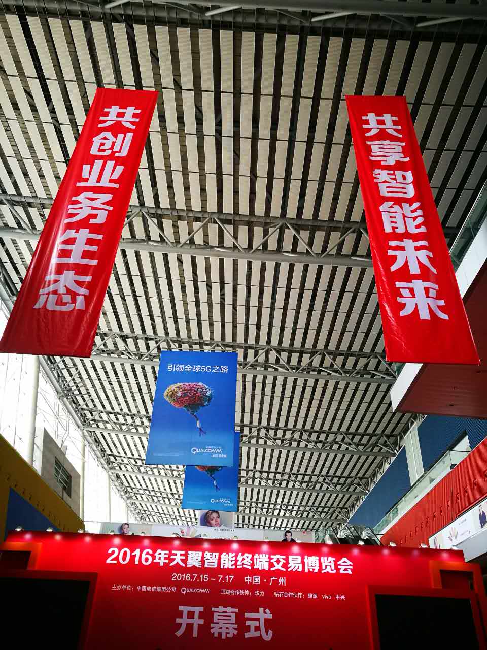 人民网广州7月15日电(杨波)由中国电信和高通(Qualcomm)公司联合举办的“2016年天翼智能终端交易博览会”今天上午在广州开幕。本届博览会主题为“互联网+ 共享智能未来”,是中国电信“互联网+”行动在智能产业层面的再造升级。广东省人民政府袁宝成副省长、高通公司史蒂夫?莫伦科夫总裁和中国电信杨杰董事长出席开幕式,并共同为“2016年天翼智能终端交易博览会”揭幕。