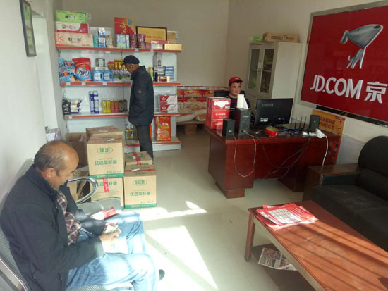 江西省泰和县也是国家级贫困县,截止2015年,泰和县尚有贫困户7000多户。泰和县桥头镇下辖10多个村,京东乡村推广员曾招武在桥头镇经营着一间50平米左右的商店。“做京东乡村推广员,我的店成了村民的便民提货点,给我带来了很多客户。”从2015年10月开始做乡村推广员,曾招武认为这对自己的生意有很好的促进。