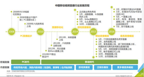 (图:中国直播行业发展历程 2014年秀色已布局移动直播领域)