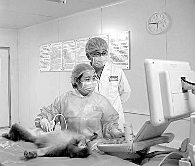 “血流频谱非常一致。”来到华西医院再生医学研究中心,高级技师孙效容正给一只植入3D打印血管70天的恒河猴做超声检测。这样的检测,每两周做一次。孙效容和同事会检测猴子血管中是否出现血栓,以及植入的血管与其自身血管的相融情况。孙效容指着CT造影三维重建图像上的圆环状图案说,“内膜已经分层,意味着打印细胞已经长成了一个完整的血管的形态。”